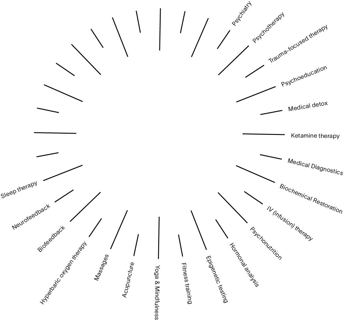 Our aftercare programme is individually tailored and designed to flexibly adapt to your evolving needs. Typically, it includes your live-in therapist accompanying you home for several weeks or months to continue providing support. Alongside this, you can have ongoing online sessions with your lead psychiatrist, ensuring consistent guidance and adjustments to your treatment plan. This may involve remote management of your supplementation and meal plans, with updates based on your progress. We also encourage re-testing of certain lab values, which can be coordinated with your GP or through a return visit to us. Additionally, follow-up check-ins can be arranged to help consolidate your recovery, providing continued support a few months after completing the intensive treatment phase.
