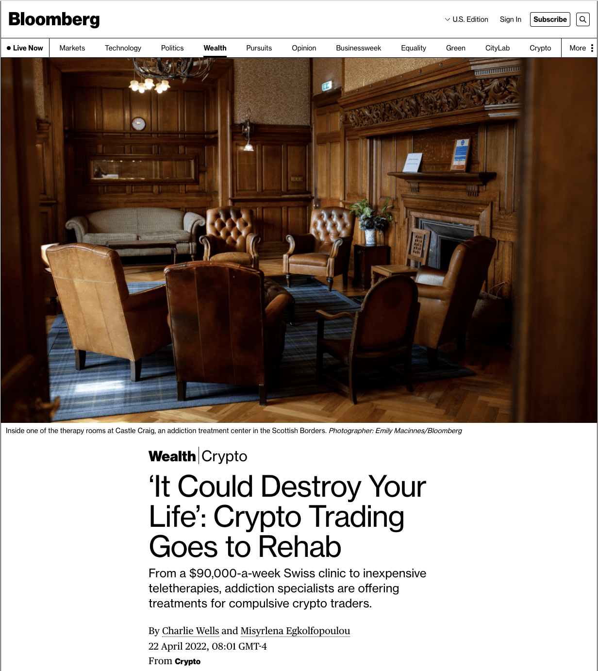 We saw a 300% increase in inquiries about crypto problems since 2018, Jan Gerber, CEO of Paracelsus Recovery, explained to Charlie Wells and Misyrlena Egkolfopoulou for Bloomberg.